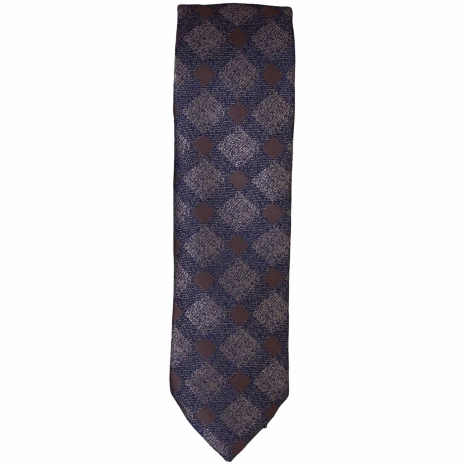 Carnét slips. Klassisk slips i brunlige nuancer med brune tern og afdæmpede striber. Bredde: 7 cm. Totallængde: 149 cm.
