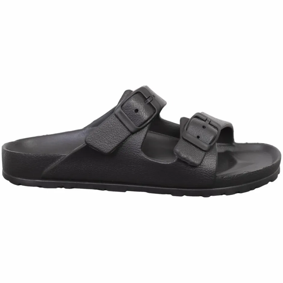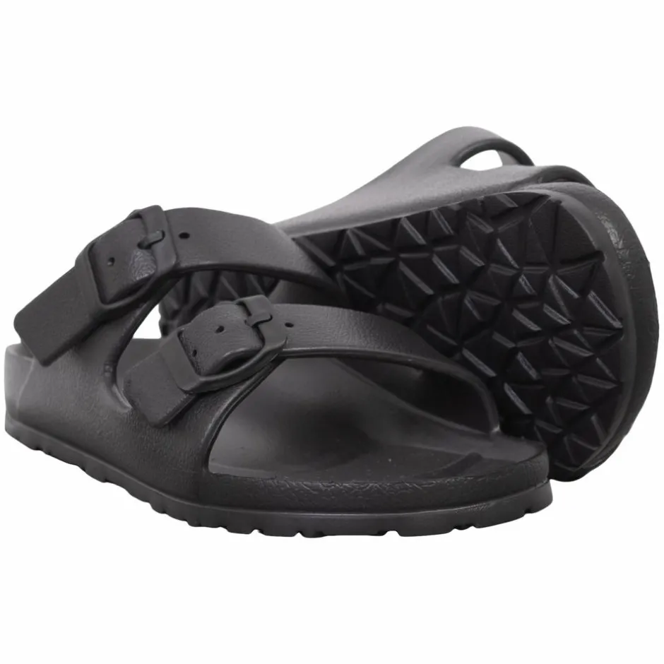 Anyway børne sandaler i ensfarvet sort. Sandalerne har to stropper over foden, som lukkes med en spændelukning.