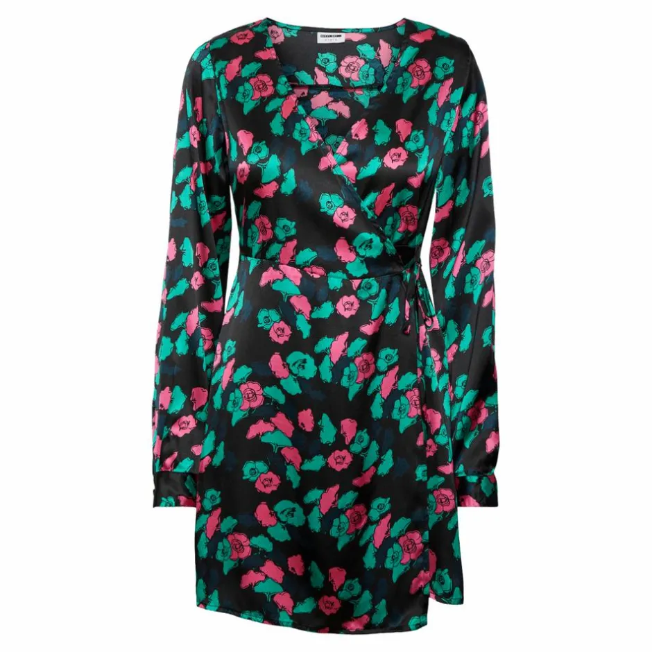 Noisy May Stella dame kjole. Kjolen bliver lukket med bindebånd, samt har kjolen knapper i ærmerne. Kjolen har all-over motiv af blomster.