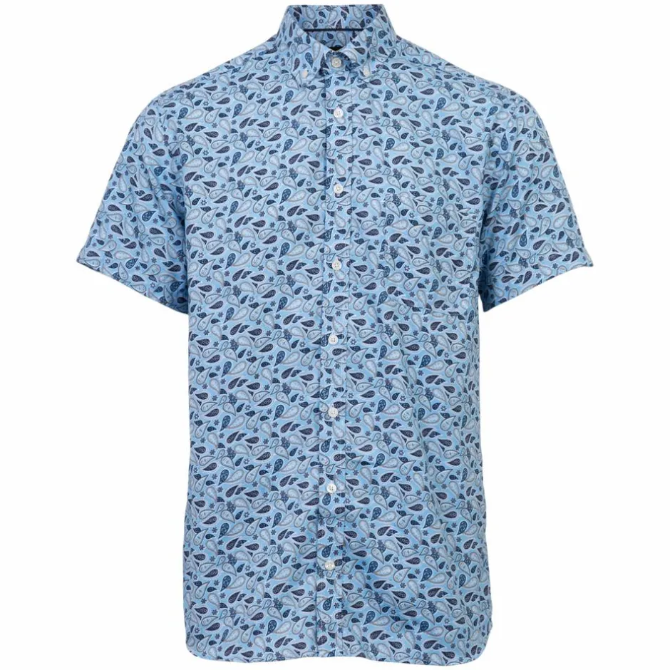 Vito kortærmet herre skjorte med all-over print. Skjorten til herre har en enkelt brystlomme i venstre side, samt gennemgående knaplukning. Denne skjorte med korte ærmer er blød og behagelig at have på, og den egner sig til både hverdagsbrug og festlige lejligheder med sit stilfulde udtryk.