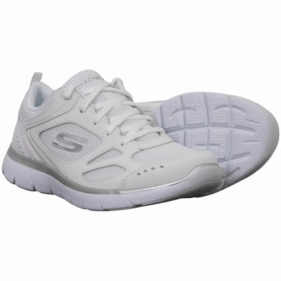Skechers Summits Suited dame sneakers med memory foam sål. Skoen er i et atletisk design med snørebånd, blødt læder og mesh overdel.