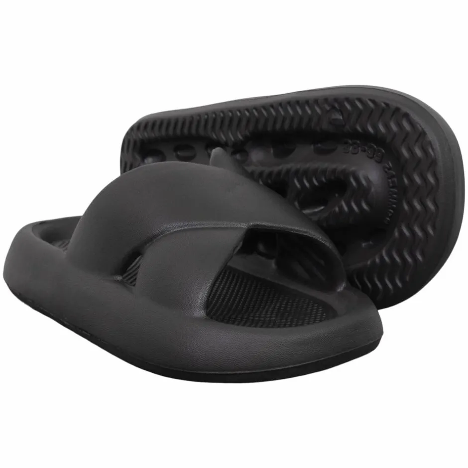 Vanting dame letvægts skum sandaler i ensfarvet sort. Sandalernes bløde sål sikrer støtte og afslapning til fødderne. Sålen har et skridsikkert mønster, der giver godt fodfæste.